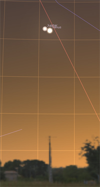 Annäherung der Venus an Jupiter und Rendezvous in der Abenddämmerung